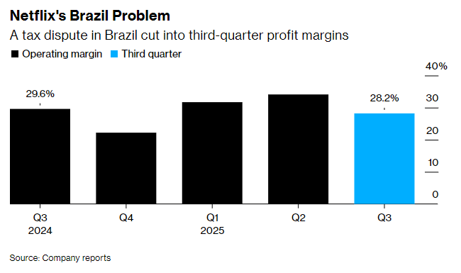 奈飞(NFLX.US)周二表示,与巴西的税务纠纷影响了其第三季度盈利,给这份原本符合华尔街预期的业绩报告蒙上了阴影。